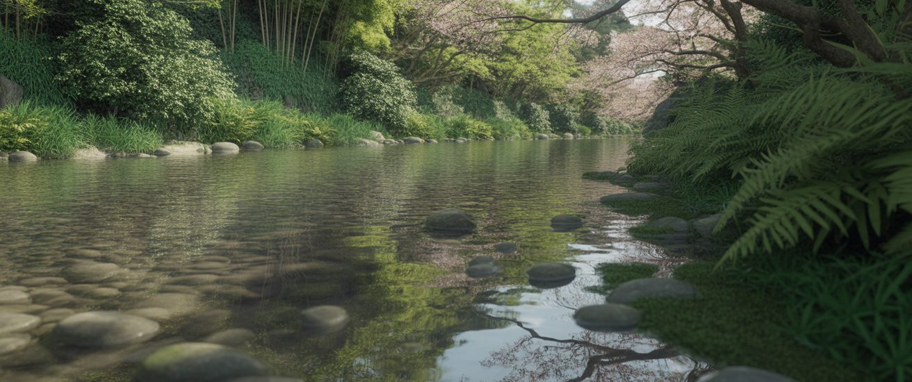 これらが一度に耳に入ってくることで、頭の中の「考えごと」が少しずつ押し出されていくような感覚になります。 まるで、川の流れがそのまま心の中まで流れ込んできて、余分なものを洗い流してくれるようです。