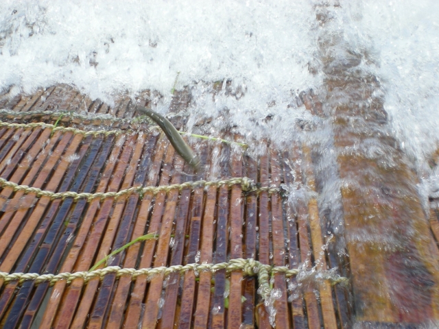 やなとは、川に仕掛けを作り、鮎が自然に入ってくるのを待つ、環境に優しい漁法です。無理に獲るのではなく、川の流れに任せて獲る。この方法は、鮎にも川にもストレスをかけない、持続可能な漁法なんですね。