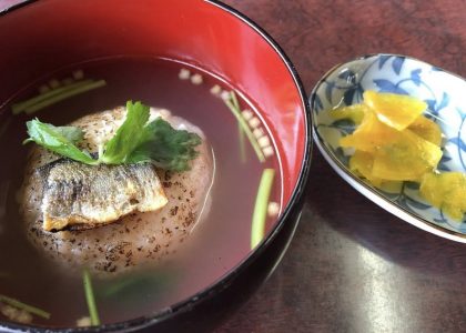 鮎雑炊は、鮎の骨から取った出汁に、ほぐした身がたっぷり入った香り豊かな一品。鮎の旨味が凝縮されたお出汁は、最後の一滴まで飲み干したくなる美味しさです🍵
